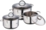 · Edelstahl rostfrei · Glasdeckel mit Chromrand und Dampfloch · induktions- und spülmaschinen- geeignet · bestehend aus: · 1x Kochtopf DH 16x9,5 cm mit Deckel · 1x Kochtopf DH 18x10,5 cm mit Deckel · 1x Kochtopf DH 20x11,5 cm mit Deckel