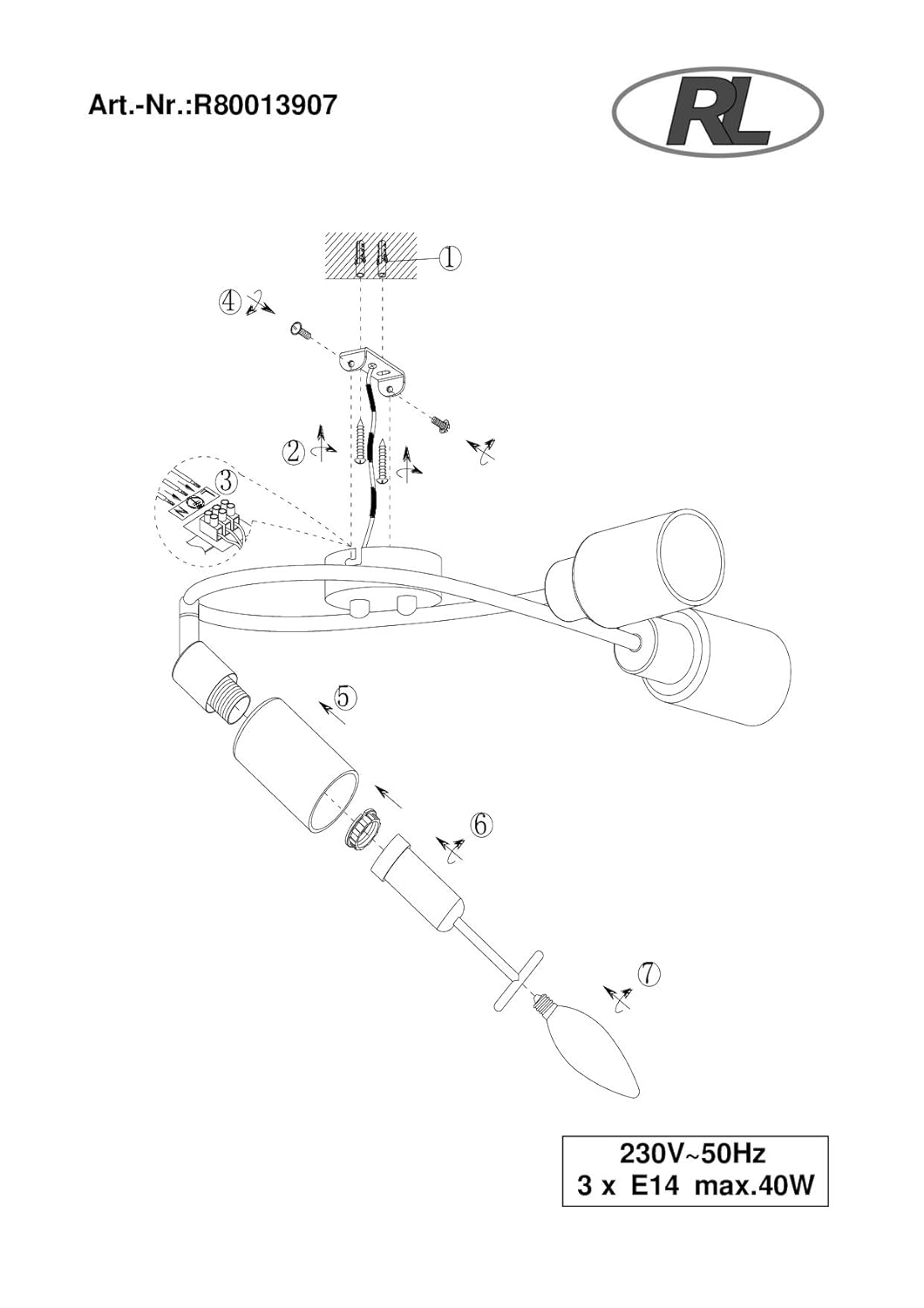 Diese vielseitige Deckenleuchte besticht durch ihre zeitlose Formgebung, die sie zum Highlight in jeder modern eingerichteten Umgebung macht. Sie ist eine schicke Design Leuchte, die als runder, 3 flammiger Strahler eine besonders gute Figur in Ihrem Wohnraum macht. Die dreiflammige Deckenlampe verbindet klassisches und modernes Design. Der Strahler hat eine Gesamtlänge von 45cm und ist dank der dreh- und schwenkbaren Spots erstklassig für die Beleuchtung von Wohn- und Schlafzimmer geeignet. Perfekt um sie in einen modernen oder klassischen Wohnstil zu integrieren. Die Farb- und Materialauswahl in Silber matt lässt sich gleichzeitig mit vielen Farbvarianten kombinieren. Sie möchten Ihren Flur oder Dielenbereich mit einer Deckenleuchte modern gestalten? Sie suchen eine Wohnzimmerlampe, die ihre Umgebung in ein ganz neues Licht taucht? Ganz gleich, welchen Anspruch Sie an eine moderne Deckenbeleuchtung haben, diese vielseitige Deckenleuchte wird ihm in jeder Hinsicht gerecht. Die Leuchte ist mit drei E14 Fassungen ausgestattet und für Leuchtmittel bis max. je 40 Watt geeignet (nicht enthalten). Bei Verwendung eines dimmbaren Leuchtmittels können Sie die Beleuchtung über Ihre Hausinstallation dimmen und so zusätzlich für eine ganz individuelle Beleuchtung sorgen