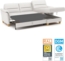 Kompaktes CAVADORE Leder-Ecksofa Palera im Landhausstil mit ausziehbarer Bettfunktion und großzügigem Stauraum im Longchair. Der Bezug besteht aus 100 % Echtleder in Reinweiß, während Rücken und Liegefläche in grauem Stoff gehalten sind. Die Polsterung mit Federkern und atmungsaktiven Schäumen sorgt für hohen Sitzkomfort. Mit einer Liegefläche von 117x205 cm und einem Stauraum von 69 x 13 x 152 cm ist dieses Sofa sowohl funktional als auch stilvoll.