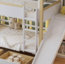 Das Etagenbett bietet zwei Liegeflächen von jeweils 90x200 cm und ist ideal für Kinder ab 6 Jahren. Es verfügt über einen stabilen Rausfallschutz, eine praktische Leiter und eine spaßige Rutsche. Die Schubladen lassen sich bequem unter das Bett rollen und bieten zusätzlichen Stauraum. Das Bettgestell aus Massivholz und die MDF-Schubladen sorgen für hohe Stabilität und modernes Design.