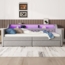 Ulife Schlafsofa aus Leinen ist ein stilvolles Tagesbett mit integrierter LED-Beleuchtung und zwei Schubladen. Es bietet eine Liegefläche von 90x200 cm und ist ideal für kleine Räume. Das Bett ist aus hochwertigem Linen+ und MDF gefertigt und hat eine Gesamthöhe von 78,5 cm. Die maximale Gewichtskapazität beträgt 272 kg. Eine Matratze ist nicht im Lieferumfang enthalten, empfohlen wird eine Dicke von 10-15 cm.