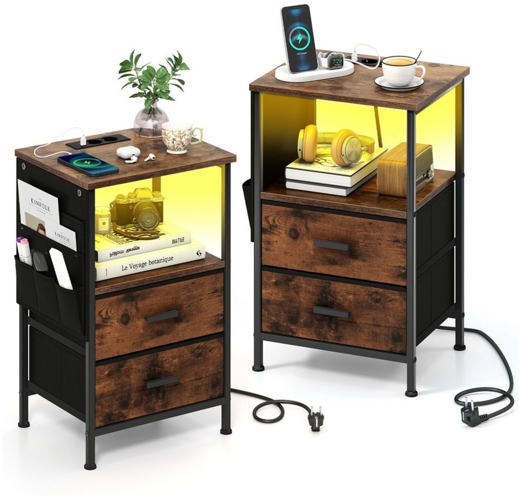 Entdecken Sie den COSTWAY Nachttisch, der Funktionalität und Stil vereint. Mit einem stabilen Metallrahmen, der bis zu 80 kg trägt, und einer integrierten Ladestation mit AC-Steckdosen und USB-Anschlüssen, ist dieser Nachttisch ideal für moderne Wohnräume. Die anpassbare LED-Beleuchtung sorgt für eine stimmungsvolle Atmosphäre, während die faltbaren Stoffschubladen für ausreichend Stauraum sorgen.