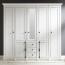 Großer Landhaus Kleiderschrank WINGST-61 in Pinie weiß Nb mit Spiegel und Kleiderstange. Mit den Abmessungen von 227 x 206 x 64 cm bietet er großzügigen Stauraum. Die Kombination aus eleganten Antik-Griffen und einer widerstandsfähigen Oberfläche macht ihn zu einem zeitlosen Möbelstück, das sich harmonisch in verschiedene Wohnstile einfügt.