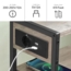 - 1 Standardsteckdose und 2 USB-Anschlüsse für bequemes Laden