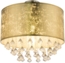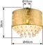 Elegante LED Deckenleuchte mit einem goldfarbig marmorierten Stoffschirm (Ø 40 cm) und dichtem Acrylkristall-Behang. Diese Leuchte vereint modernes Design mit Funktionalität und sorgt für eine stilvolle Beleuchtung in Ihrem Wohnraum. Sie ist mit einer E27 Fassung ausgestattet und wird mit einem 7 Watt LED Leuchtmittel (806 Lumen, 2.700 Kelvin) geliefert, das über einen herkömmlichen Lichtschalter in 3 Stufen dimmbar ist.