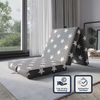 Einmal zusammengeklappt, ist die Faltmatratze sehr platzsparend und ist auch als Sitzmöglichkeit einsetzbar!