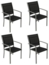 Praktisches 4er-Set Gartenstuhl LEEDS aus silbergrau pulverbeschichtetem Metallgestell und strapazierfähigem, wetterfestem Textilgewebe in Schwarz. Mit den Maßen 55 x 89 x 64 cm bieten die Stühle Stabilität und Komfort für Garten, Terrasse oder Balkon. Sie sind stapelbar und somit platzsparend. Die Lieferung erfolgt zerlegt, eine Montage ist erforderlich.