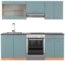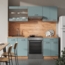 Die Vicco Küchenzeile in Blau-Grau/Goldkraft Eiche mit einer Breite von 200 cm ist die ideale Komplettlösung für Ihre Küche. Sie bietet eine elegante und gut organisierte Umgebung für die Essenszubereitung. Die höhenverstellbaren Füße sorgen für eine perfekte Anpassung, während die Melaminharzbeschichtung der Oberfläche für Langlebigkeit sorgt.