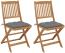 Diese klappbaren Gartenstühle aus massivem Akazienholz bieten Ihnen den idealen Platz zum Entspannen im Garten oder auf der Terrasse. Sie sind robust, stabil und lassen sich platzsparend zusammenklappen. Die grauen Sitzkissen sorgen für zusätzlichen Komfort und sind mit Bindebändern zur Befestigung ausgestattet.