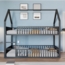 Bett 140x200 cm in Hausform aus Metall mit Tür und Sicherheitsgeländern – kindgerechtes Etagenbett