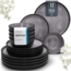 Das Steingut Geschirrset Ibiza für 4 Personen besteht aus 12 Teilen und vereint zeitloses Design mit hoher Funktionalität. Hergestellt aus massivem Steingut, bietet es eine kratzfeste Innenfläche und ist sowohl mikrowellen- als auch spülmaschinenfest. Die Kombination aus elegantem Grau und mattem Schwarz verleiht Ihrem Tisch eine stilvolle Note. Ideal für den täglichen Gebrauch sowie besondere Anlässe.