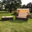 - 1 x Gartenset bestehend aus Strandkorb und Fußbank inkl. Sitzkissen und seitlichen Klapptisch