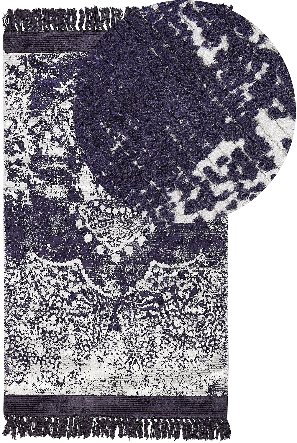 Der Teppich AKARSU in Violett und Weiß mit orientalischem Muster ist ein stilvolles Accessoire für Ihr Zuhause. Mit einer Größe von 80x150 cm und einer Florhöhe von 0,3 cm bringt dieser handgewebte Kurzflor-Teppich einen einzigartigen Vintage-Charme in jeden Raum. Hergestellt aus 100 % Viskose, bietet er eine angenehme Haptik und ist pflegeleicht. Die dunklen Fransen und die harmonische Farbkombination machen ihn zu einem echten Hingucker.
