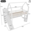 Dieses Hochbett 90x200 cm in Weiß vereint spielerisches Design mit hoher Stabilität und Funktionalität. Gefertigt aus massivem Kiefernholz, MDF und Plywood, bietet es eine robuste Struktur. Die Rutsche und Rolltreppe verwandeln das Schlafzimmer in einen Spielplatz, während der integrierte LED-Lichtstreifen eine gemütliche Atmosphäre schafft. Clever platzierte Regale bieten Stauraum für Spielzeug und Bücher. Ideal für Kinderzimmer ab 6 Jahren.