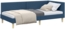 Eckbettgestell von vidaXL in Blau, 100 x 200 cm, aus Stoff und beschichtetem Holz. Dieses moderne Bettgestell vereint stilvolles Design mit praktischer Nutzung und passt perfekt in jede Ecke Ihres Schlafzimmers. Die weiche Polyesterpolsterung sorgt für Komfort, während der robuste Lattenrahmen eine optimale Unterstützung bietet. Mit einem verstellbaren Kopfteil und pflegeleichtem Material ist es ideal für entspannte Stunden.