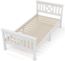 Holzbett Einzelbett aus Bettgestell mit Lattenrost, Holzbett mit Kopfteil, Massivholz, Kinderbett Jugendbett, Kiefer massiv, Weiß, 90 x 200 cm