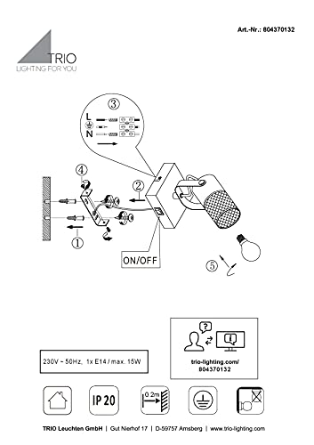 Der 1er Spot Tosh von Trio Leuchten vereint modernes Design mit Funktionalität. Die Kombination aus schwarzem, mattem Metall und Holz sorgt für ein zeitloses und gemütliches Wohnambiente. Mit einem schwenkbaren Spot können Sie gezielte Lichtakzente im Flur, Wohn- oder Schlafzimmer setzen. Die Leuchte ist für ein E14 Leuchtmittel mit maximal 15 W geeignet und bietet eine energiesparende Beleuchtung.