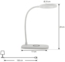 Die LED-Tischleuchte Siona ist aus Kunststoff und Metall gefertigt. Sie besitzt eine CCT-Funktion und ist dimmbar. Sie wird ohne Netzstecker geliefert und kann mit 5V oder 9V betrieben werden. Darüber hinaus besitzt sie eine kontaktlose Ladestation für andere Geräte.