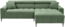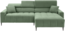 Die Ottomane ist rechtsseitig angeordnet. Drei manuell verstellbare Kopfteile und zwei passende Kissen ergänzen die Ausstattung. Der angenehm weiche Feincord-Bezug in Grün verleiht dem Sofa eine wohnliche Note, während schwarze Metallfüße für einen stilvollen Kontrast sorgen.