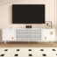 Eleganter TV-Ständer mit Gitterstruktur und goldenen Akzenten. Dieser TV-Ständer vereint stilvolles Design mit hoher Funktionalität und passt perfekt in jedes moderne Zuhause. Mit vier Türen, zwei im Gitterdesign und zwei mit Goldakzenten, bietet er sowohl klassischen als auch modernen Charme. Ein integrierter Kippschutz sorgt für Sicherheit, während Kabelführungslöcher eine praktische Aufbewahrung ermöglichen.