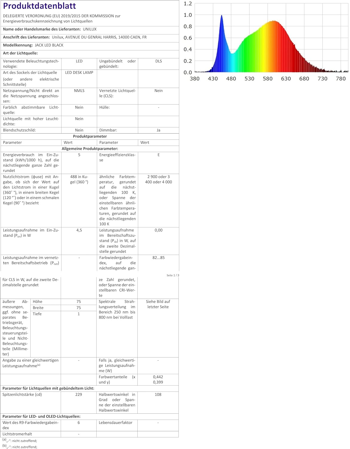 Die UNiLUX LED-Tischleuchte JACK in Schwarz ist eine moderne und effiziente Leuchte mit einem USB-Anschluss zum Laden von Smartphones. Der ellipsenförmige Leuchtenkopf sorgt für eine optimale Lichtverteilung. Mit einer Leistung von 6 Watt und einem Lichtstrom von 600 Lumen bietet die Leuchte eine hohe Helligkeit. Die Lichtausbeute beträgt 100 lm/W und der Mindest-Farbwiedergabewert liegt bei 80 Ra. Die Leuchte verfügt über 4 einstellbare Lichtstärken und 3 verschiedene Farbtemperaturen von warm- bis kaltweiß (2.900 - 3.500 - 4.000 K). Mit dem Dimmschalter am Standfuß kann die gewünschte Lichtintensität eingestellt werden. Der Leuchtenkopf ist verstellbar und der Arm absenkbar. Die Leuchte besteht aus ABS-Kunststoff und hat eine Höhe von 540 mm. Der Durchmesser des Leuchtenkopfes beträgt 100 mm und der des Standfußes 150 mm. Die Kabellänge beträgt 1,95 m und die Leuchte wird mit einem Eurostecker geliefert.