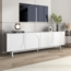 Dieser elegante TV-Schrank in Weiß kombiniert minimalistisches Design mit praktischer Funktionalität. Mit den Abmessungen 175 x 38 x 56 cm bietet er ausreichend Platz für Ihre Multimedia-Geräte. Die vier Türen mit Push-to-Open-Mechanismus und die verstellbaren Einlegeplatten sorgen für eine flexible und grifflose Nutzung. Die Massivholzbeine verleihen Stabilität und einen zeitlosen Charakter. Hergestellt aus hochwertigem Holz, garantiert dieser Schrank Langlebigkeit und Standfestigkeit.