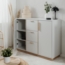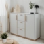 Das Calicosy Sideboard mit 2 Türen und 3 Schubladen vereint modernes Design und Funktionalität. Mit einer Länge von 125 cm, einer Breite von 40 cm und einer Höhe von 94 cm bietet es ausreichend Stauraum. Die mattierte Oberfläche und die holzfarbenen Griffe verleihen dem Möbelstück eine elegante Note. Hinter den Türen befinden sich 2 Regale, die zusätzlichen Platz für Ihre Utensilien bieten.