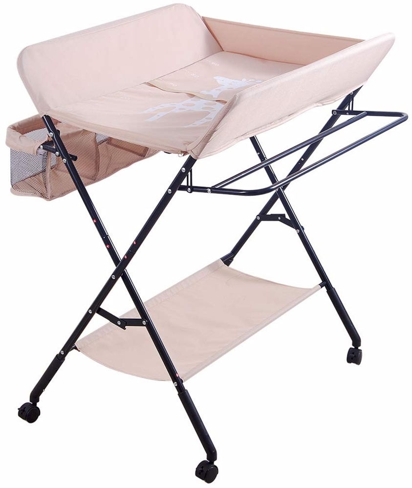 Die klappbare Baby Wickelkommode bietet eine praktische Lösung für das Wickeln Ihres Babys. Mit einer Größe von 80x66 cm und einer verstellbaren Höhe von 92 bis 98 cm ist sie ideal für verschiedene Räume. Der stabile dreieckige Rahmen aus verstärktem Stahl sorgt für Sicherheit, während die vier leisen Universalräder eine einfache Mobilität ermöglichen. Das umweltfreundliche Material und das Sicherheitskissen mit Höhenskala machen das Wickeln komfortabel und sicher.