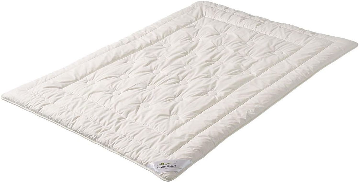 Die Traumschlaf Merino Zirbendecke ist eine leichte Decke mit einer Füllung aus 100% Merino Schurwolle und Zirbenholzspänen. Der Bezug besteht aus KBA-Perkal 100% Baumwolle. Mit den Maßen 155 x 200 cm bietet sie optimalen Komfort. Hergestellt in Deutschland, vereint sie die Vorteile von Merino Schurwolle und Zirbenholz, um eine angenehme Schlafumgebung zu schaffen. Waschbar bei 30°C im Wollwaschgang.