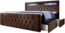 Das Boxspringbett Sera vereint stilvolles Design mit praktischen Funktionen. Mit einer Liegefläche von 180x200 cm bietet es ausreichend Platz für erholsamen Schlaf. Der edle Samtbezug in Braun und die integrierte LED-Beleuchtung im Kopfteil schaffen eine gemütliche Atmosphäre. Zudem sorgt der PU-Schaum-Topper für optimalen Komfort, während die vier Schubladen an den Seiten zusätzlichen Stauraum für Decken und Kissen bieten.