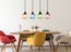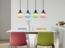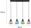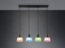 Die 4-flammige Pendelleuchte QUENYA bringt Farbe und frisches Design in Ihr Zuhause. Mit einer Breite von 90 cm und vier Glas Lampenschirmen in Rillenoptik in den Farben Grün, Blau, Bernstein und Wild Berry sorgt sie für eine angenehme Atmosphäre über dem Esstisch oder der Kücheninsel. Der matt schwarze Baldachin rundet das moderne Erscheinungsbild ab. Die Leuchte ist mit vier E27 Fassungen ausgestattet und für Leuchtmittel bis max. 25 Watt geeignet.