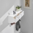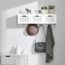 Wandgarderobe mit 3 Körben und 4 Haken in Weiß, gefertigt aus MDF. Sie bietet eine Belastbarkeit von bis zu 15 kg und wiegt ca. 10,1 kg. Mit den Maßen von ca. 80 x 25 x 20 cm ist sie vielseitig einsetzbar im Flur, Bad oder in der Küche. Die 3 Körbe sind ideal für Schlüssel und Briefe, während die 4 Haken Platz für Jacken und Taschen bieten.