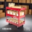 Der AREBOS Werkstattwagen ist der ideale Helfer für Werkstatt, Haushalt oder Gewerbe. Mit einer Gesamtbelastbarkeit von bis zu 100 kg und drei großzügigen Fächern bietet er ausreichend Stauraum für Werkzeuge und andere Gegenstände. Die Abmessungen betragen 84 x 41 x 79 cm, während die Fächer eine Größe von 75 x 40 cm haben. Dank der zwei Lenkrollen und zwei festen Rollen aus Kunststoff ist der Rollwagen mobil und leicht zu bewegen.