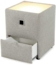 Der Nachttisch Lukas / Lancy überzeugt durch seine stilvolle Farbgebung und praktische Eigenschaften. Mit einem Korpus aus silbernem Stoff und den Maßen 43 x 53 x 43 cm bietet er nicht nur eine ansprechende Optik, sondern auch nützlichen Stauraum durch den integrierten Schubkasten. Die indirekte Beleuchtung der Ablageplatte sorgt für eine angenehme Atmosphäre und macht eine zusätzliche Lampe möglicherweise überflüssig. Der Nachttisch wird bereits fertig montiert geliefert.