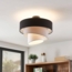 Die Deckenleuchte Coria von Lindby vereint modernes Design mit funktionalem Licht. Sie besteht aus drei stilvollen Textilschirmen in Schwarz, Grau und Weiß, die übereinander angeordnet sind und ein warmes, blendfreies Licht erzeugen. Mit einer Höhe von 34 cm und einem Durchmesser von 40 cm fügt sich die Leuchte harmonisch in verschiedene Wohnräume ein. Die E27-Fassung ermöglicht den Einsatz von Leuchtmitteln bis zu 60 W, die jederzeit austauschbar sind.