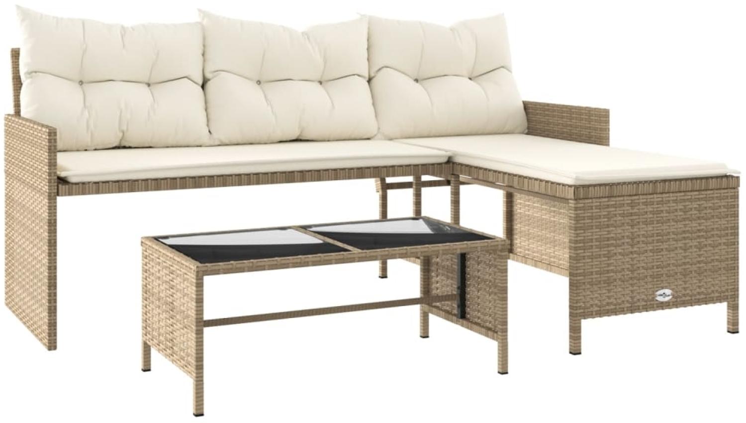 vidaXL Gartensofa in L-Form mit Tisch und Kissen Beige Poly Rattan 365575