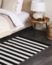 Robuster Outdoor Teppich im modernen schwarz-weißen Streifenmuster. Mit einer Florhöhe von 0,7 cm und den Abmessungen 80x150 cm ist dieser handgewebte Teppich ideal für Terrasse und Balkon. Hergestellt aus 100% Polyethylen, trocknet er schnell und ist besonders pflegeleicht. Das Gewicht von 2 kg sorgt für Stabilität, während die rutschfeste Unterseite nicht vorhanden ist.