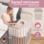 Das babybay Boxspring Beistellbett in beige lackiert ist die ideale Lösung für hohe Betten. Die stufenlose Höhenverstellung passt die Liegefläche perfekt an Boxspringbetten an, ohne Stufe oder Spalt. Dank der Belüftung und der Gurtbefestigung ist eine optimale Luftzirkulation gewährleistet. Das Bett ist bis zu 150 kg belastbar, TÜV-geprüft und aus nachhaltigem Buchenvollholz gefertigt.