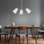 Pendelleuchte HOPPER mit flexiblen Lampenschirmen aus Stoff ist ein stilvoller Blickfang für Ihren Wohnraum. Ideal über dem Wohn- oder Esszimmertisch platziert, sorgt sie für eine angenehme Beleuchtung. Die Leuchte verfügt über drei E14 Fassungen, die jeweils mit einem maximalen Leuchtmittel von 30 Watt bestückt werden können.