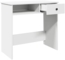 Dieser elegante Schreibtisch in Weiß ist eine praktische und stilvolle Ergänzung für jeden Wohnraum. Mit seinen großzügigen Abmessungen von 80 x 40 x 75 cm bietet er ausreichend Platz für Computer und Schreibutensilien. Der robuste Holzwerkstoff sorgt für Langlebigkeit und eine pflegeleichte Oberfläche, die sich leicht reinigen lässt. Ideal für Arbeitszimmer, Schlafzimmer, Wohnzimmer oder Büro.