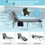 Die Clevich XXL Liegestühle im 2er Set bieten mit einer Größe von 199x66 cm viel Platz zum Entspannen. Die fünffach verstellbare Rückenlehne ermöglicht individuelle Anpassungen für jede Situation. Ausgestattet mit einer abnehmbaren Kopfstütze und praktischen Seitentaschen, ist diese Liege ideal für Garten, Strand oder Camping. Der stabile Rahmen mit einer Tragkraft von bis zu 150 kg sorgt für Sicherheit und Komfort. Zudem ist die Liege leicht und einfach zusammenklappbar.