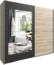 Moderner Schwebetürenschrank mit 2 Türen in Eichen-Dekor und grauer Stahl-Optik. Die einseitig verspiegelte Front mit vier Spiegelflächen bietet nicht nur ein optisches Highlight, sondern auch praktische Unterstützung bei der Outfitwahl. Mit 2 höhenverstellbaren Einlegeböden und 2 Kleiderstangen sorgt der Schrank für eine übersichtliche Aufbewahrung Ihrer Garderobe.