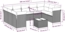 - Mittelsofa: Abmessungen: 55 x 62 x 69 cm (B x T x H), Sitzgröße: 55 x 55 cm (B x T), Sitzhöhe: 37 cm