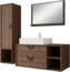 Das Badmöbel-Set Fainen 14 in der Farbe Nuss Warmia bietet eine stilvolle und funktionale Lösung für Ihr Badezimmer. Es umfasst einen Spiegel, einen Waschbeckenschrank, einen Badezimmerschrank und ein Waschbecken aus Mineralwerkstoff. Die Möbel sind aus 16 mm dicker Spanplatte gefertigt und verfügen über gedämpfte Schließsysteme für Schubladen und Türen.