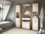 • Viel Stauraum dank Waschbeckenunterschrank, Spiegelschrank, Standschrank und Hängeschrank