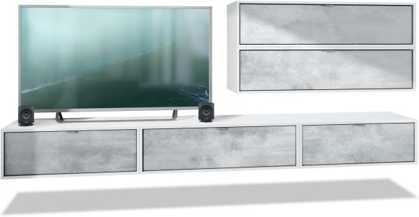 Wohnwand Lana V2 Anbauwand aus 5 Hängeelementen mit 12 Fächern, Korpus in Weiß Matt, Fronten in Beton Oxid Optik Bild 1