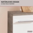 - Design: Korpus in Eiche Natur, Front in strahlendem Weiß Hochglanz