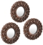 Verschönern Sie kahle Wände mit dem dekorativen Spiegel 3er Set Barock 10043212. Die Zierspiegel im barocken Design bringen einen edlen Touch in Flur, Wohn- oder Schlafzimmer. Hergestellt aus PP-Kunststoff und Glas, sind sie in den Farben Bronze und Schwarz erhältlich. Mit einem Durchmesser von 11,5 cm und einer Tiefe von 2 cm sind die Spiegel leicht zu montieren und wiegen jeweils ca. 220 g.