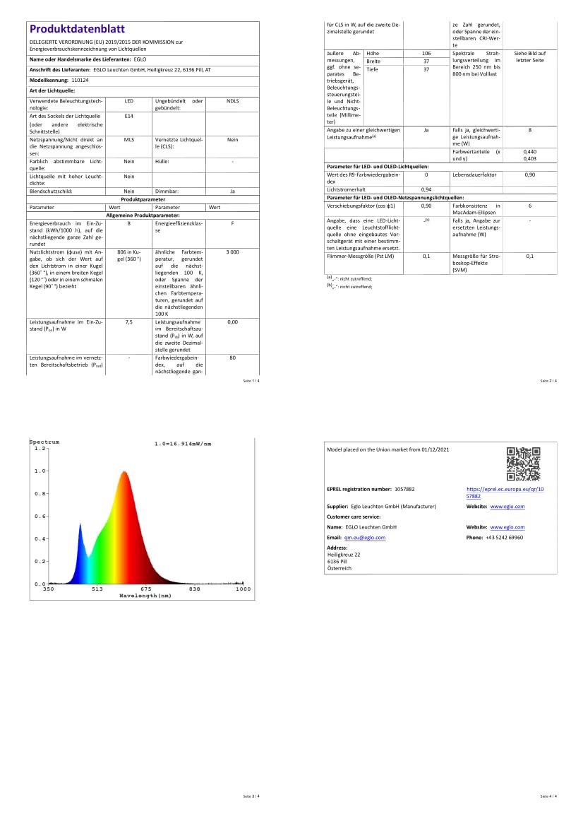 Eglo 110124 Leuchtmittel LED E14 L:10. 6cm Ø:3. 7cm dimmbar 3000K