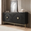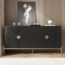 Dieses moderne Sideboard in Schwarz besticht durch seine elegante geometrische Front mit markanten 3D-Strukturen und goldfarbenen Griffen. Die stabilen Metallbeine sorgen für eine robuste Konstruktion, während der großzügige Stauraum hinter den vier Türen Ordnung in Ihrem Wohn- oder Esszimmer schafft. Mit einem Gesamtmaß von 162 x 40 x 80 cm ist es ein funktionales Highlight für jedes moderne Interieur.